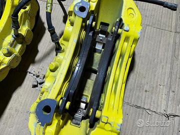 Pinze frenanti anteriori a 6 pompanti originali Brembo derivanti da Porsche Macan Cayenne e Panamera , queste pinze con modifiche o staffe giuste possono montare a Volkswagen Golf gti R Passat Tiguan Scirocco ecc, Audì A3 ecc, Skoda ,Seat, Ford Focus rs, Renault Megane rs ecc Alfa Romeo Giulia, Stelvio, Giulietta, 159, Brera ecc Audi A3 S3 Rs3 Q3 Rsq3 A4 S4 Rs4 A5 S5 Rs5 Q5 Sq5 ecc BMW serie 1, 2 ,3, 4, 5, X1 , X2, X3, X4 ecc Mercedes classe A Cla Gla classe B Glb , classe C Glc ecc, per qualsiasi informazione potete contattarmi telefonicamente o WhatsApp al 3292077195,con possibilità di spedizione.