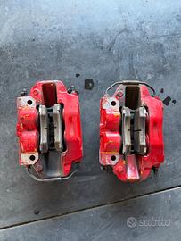 Pinze brembo 4 pompanti derivazione alfa Giulia con pastiglie praticamente nuove, perfette per modifica montaggio dischi 305/316mm, montabili su tutto il gruppo alfa e con apposite staffe anche su grande punto, 500 abarth, mini… Le pinze in sono originali di colore giallo con serigrafia alfa Romeo e verniciate a bomboletta