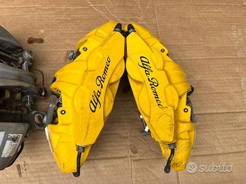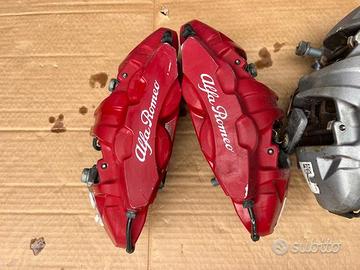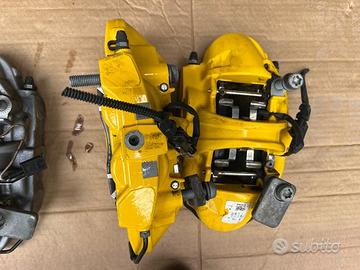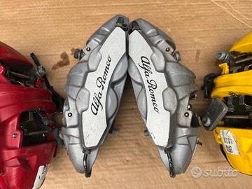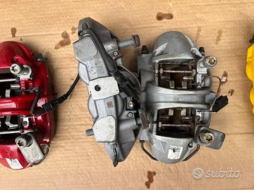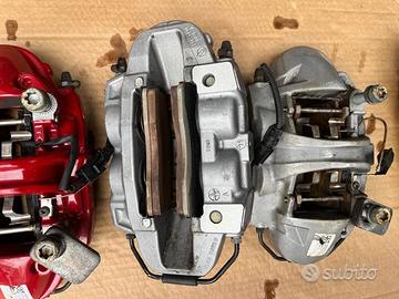 Pinze freno a 4 pompanti originali Brembo per dischi da 330mm derivanti da Alfa Romeo Giulia o Stelvio ,con staffe adatte possono montare a Alfa Romeo Giulietta Giulia Stelvio 159 Brera Tonale ecc Volkswagen Golf gti R Passat Tiguan Scirocco ecc, Audì A3 S3 Rs3 A4 S4 Rs5 A5 S5 Rs5 A6 S6 Rs6 Q3 Rsq3 Q5 Sq5 Q7 ecc, Mercedes classe A A35 A45 classe C C43 C63 Classe E classe S Gla Glc Gle ecc Skoda octavia,Seat leon fr, Ford Focus rs , Renault Megane rs ecc ecc, una coppia delle pinze complete di pastiglie, fermi ecc( come si vedono in foto) costano 300 euro, per qualsiasi informazione potete contattarmi telefonicamente o Whatsapp al 3292077195, con possibilità di spedizione