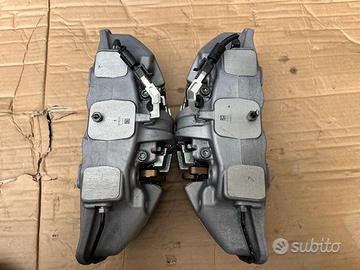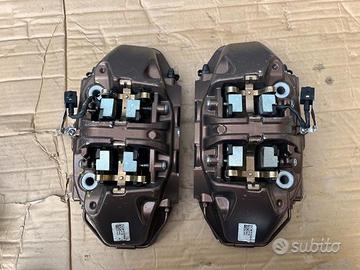 Pinze freno a 4 pompanti originali Brembo derivanti Maserati, pinze pari al nuovo, con staffe adatte possono montare a Maserati Ghibli , Levante , Quattroporte , Grecale ecc , Alfa Romeo Giulietta Giulia Stelvio 159 Brera ecc Volkswagen Golf gti R Passat Tiguan Scirocco ecc, Audì A3 S3 Rs3 A4 S4 Rs5 A5 S5 Rs5 A6 S6 Rs6 Q3 Rsq3 Q5 Sq5 Q7 ecc, Mercedes classe A A35 A45 classe C C43 C63 Classe E classe S Gla Glc Gle ecc BMW serie 1 2 3 4 5 6 x1 x2 x3 x4 x5 x6 ecc Skoda octavia,Seat leon fr, Ford Focus rs , Renault Megane rs ecc ecc, una coppia delle pinze complete di pastiglie, fermi ecc( come si vedono in foto) costano 450euro, per qualsiasi informazione potete contattarmi telefonicamente o Whatsapp al 3292077195, con possibilità di spedizione o ritiro in sede.