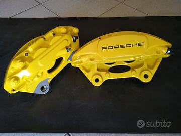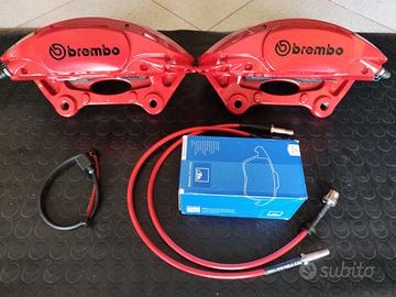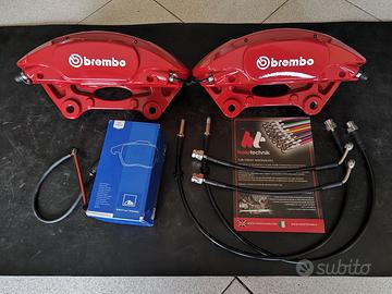 Vendo kit per maggiorare l'impianto frenante su Golf 7 Gti e altri modelli del gruppo come Golf 5 6 7 8 , Audi A3 TT Leon Tiguan ecc ecc. composto da: _ Pinze Brembo Porsche Macan a 4 pompanti revisionate e riverniciate rosse o gialle a polvere (adesivo personalizzabile); _ Pastiglie nuove ATE con sensore usura (marca top per pastiglie stradali); _ Tubi in treccia specifici per queste pinze in colorazione rossi o neri; Per completare il kit sono necessari dischi da 345mm (da acquistare a parte), è possibile montarle anche sui dischi da 340mm del Gti performance anche se non è la soluzione migliore. Le pinze montano senza alcuna staffa o adattatore e sono marchiate Audi/VW. Prezzo 700e + sped o ritiro