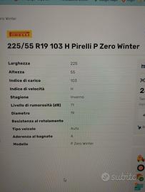 Pirelli PZero Winter 225/55 R19 103 V M+S. Gomma praticamente nuova. Ha percorso solo 600 km. Pagata il doppio a dicembre 2025.