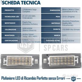 Kit Luci Targa FULL LED per Fiat PANDA 2 169 | Placchette COMPLETE Luce Bianca CANbus NO Errori, NO Modifiche | Scocca in ABS Nera, Lente in Policarbonato e Parti in Alluminio. - Ricambio Perfetto Omologato ( Plug and Play ) - 21 LED SMD, con Raggio di Azione di 180° - Luminosità Garantita - Resistenti all' Acqua Placchette Luci Targa FULL LED Canbus Omologate di ultima generazione con Lente in POLICARBONATO e SCOCCA in ABS, 21 LED SMD, realizzate con led driver e filtri antisfarfallio INCORPORATI, per una tensione constante e priva di FASTIDIOSI SFARFALLII, conserva una presa identica al proprio mezzo, per un montaggio privo di modifiche, semplicemente in sostituizione alle proprie/i. COMPATIBILITÀ: - Fiat Panda 2 (169) 2003-2012 ISTRUZIONI DI MONTAGGIO: - Rimuovere le attuali placche led, aiutandosi, se necessario con un cacciavite, infilando la punta nella parte laterale della placca e facendo pressione verso l'esterno: la placca verrà si sgancerà e verrà fuori. / Se presenti Viti Rimuoverle Svitandole per sganciare la placchetta - Scollegare il cavo e staccare definitivamente la placca. - Collegare al cavo la nuova PLACCA LED, e riposizionarla all'interno dell'alloggiamento. Ripetere la stessa operazione con la seconda targa. DETTAGLI TECNICI: - N° LED INTERNI: 2.0W X 21 LED SMD 3528 (ogni placca) - Voltage: 12V - Colore (K): 6.500K - BIANCO GHIACCIO - Lumen: 1134 LM (567+567) - Resistente all' acqua: SI - Peso: 23 Gr (Singolo) - Vita stimata: 50.000 H (Tested) - 2 Filtri interni di regolazione tensione per evitare SFARFALLII - Temperatura di lavoro Compresa tra - 40°C / +65°C PER INFO CONTATTARE AL 3927091031 ANCHE LINEA WhatsApp OPPURE VIA E-MAIL: rtautoitalia2018@libero.it CONSEGNA: - Effettuiamo Spedizioni 24-48H in TUTTA ITALIA - Ritiro in Sede con Possibilità di Visionare il Prodotto - Vendiamo solo Articoli Nuovi PAGAMENTI: - PayPal - Con Carta - Bonifico Bancario - Alla Consegna con Contrassegno