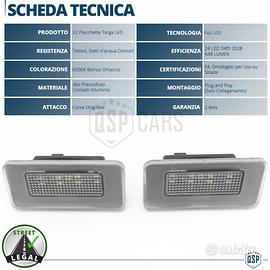 2 Placchette Targa FULL LED per TESLA Model X | CANbusNO Errori, Plug & Play NO Modifiche | Scocca in ABS, Lente in Policarbonatoe Parti in Alluminio. - Perfetto Rimpiazzo (Plug and Play) - 12 LED SMD, con Raggio di Azione di 180° - Luminosità Garantita - Resistenti all' Acqua e alla Polvere - Omologate E4 | Uso Legale su Strada Placche Targa FULL LED di ultima generazione con Lente in POLICARBONATO e SCOCCAin ABS, 12 LED SMD, realizzate con led driver e filtri antisfarfallioINCORPORATI, per una tensione constante e priva di FASTIDIOSI SFARFALLII,conserva una presa identica al proprio mezzo, per un montaggio privo dimodifiche, semplicemente in sostituizione alle proprie/i. COMPATIBILITÀ: - TESLA Model X (dal 2015) ISTRUZIONI DI MONTAGGIO: - Rimuovere le attuali placchette, aiutandosi, se necessario con un cacciavite,infilando la punta nella parte laterale della placca e facendo pressione versol'esterno: la placca verrà si sgancerà e verrà fuori. - Scollegare il cavo e staccare definitivamente la placchetta. - Collegare al cavo la nuova PLACCHETTA LED, e riposizionarla all' internodell'alloggiamento. DETTAGLI TECNICI: - N° LED INTERNI: 12 LED SMD 3528 (ogni placca) - Voltage: 12V - Colore (K): 6.500K - BIANCO GHIACCIO - Potenza di Illuminazione: 648 LM ( 324LM + 324LM ) / 4W (2W+2W) - Resistente all' acqua: SI - Peso: 14 Gr (Singolo) - Vita stimata: +50.000 H (Tested) - 2 Filtri interni di regolazione tensione per evitare SFARFALLII - Temperatura di lavoro Compresa tra - 40°C / +65°C PER INFO CONTATTARE AL 3927091031 ANCHE LINEA WhatsApp OPPURE VIA E-MAIL: rtautoitalia2018@libero.it CONSEGNA: - Effettuiamo Spedizioni 24-48H in TUTTA ITALIA - Ritiro in Sede con Possibilità di Visionare il Prodotto PAGAMENTI: - PayPal - Con Carta - Bonifico Bancario - Alla Consegna con Contrassegno