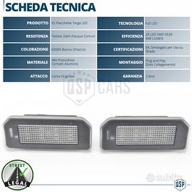 2 Placchette Targa FULL LED per Tesla Model Y | CANbus NOErrori, Plug & Play NO Modifiche | Scocca in ABS, Lente in Policarbonato eParti in Alluminio. - Perfetto Rimpiazzo (Plug and Play) - 12 LED SMD, con Raggio di Azione di 180° - Luminosità Garantita - Resistenti all' Acqua e alla Polvere - Omologate E4 | Uso Legale su Strada Placche Targa FULL LED di ultima generazione con Lente inPOLICARBONATO e SCOCCA in ABS, 12 LED SMD, realizzate con led driver e filtriantisfarfallio INCORPORATI, per una tensione constante e priva di FASTIDIOSISFARFALLII, conserva una presa identica al proprio mezzo, per un montaggioprivo di modifiche, semplicemente in sostituizione alle proprie/i. COMPATIBILITÀ: - Tesla Model Y (dal 2020) ISTRUZIONI DI MONTAGGIO: - Rimuovere le attuali placchette, aiutandosi, se necessariocon un cacciavite, infilando la punta nella parte laterale della placca efacendo pressione verso l'esterno: la placca verrà si sgancerà e verrà fuori. - Scollegare il cavo e staccare definitivamente laplacchetta. - Collegare al cavo la nuova PLACCHETTA LED, eriposizionarla all' interno dell'alloggiamento. DETTAGLI TECNICI: - N° LED INTERNI: 12 LED SMD 3528 (ogni placca) - Voltage: 12V - Colore (K): 6.500K - BIANCO GHIACCIO - Potenza di Illuminazione: 648 LM ( 324LM + 324LM ) / 4W(2W+2W) - Resistente all' acqua: SI - Peso: 14 Gr (Singolo) - Vita stimata: +50.000 H (Tested) - 2 Filtri interni di regolazione tensione per evitareSFARFALLII - Temperatura di lavoro Compresa tra - 40°C / +65°C PER INFO CONTATTARE AL 3927091031 ANCHE LINEA WhatsApp OPPURE VIA E-MAIL: rtautoitalia2018@libero.it CONSEGNA: - Effettuiamo Spedizioni 24-48H in TUTTA ITALIA - Ritiro in Sede con Possibilità di Visionare il Prodotto PAGAMENTI: - PayPal - Con Carta - Bonifico Bancario - Alla Consegna con Contrassegno