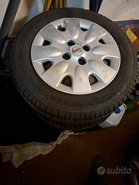 Vendo 4 pneumatici ricoperti multistagionali con cerchioni e calotte della Nissan Micra misura 165/70-14. Disposto a spedire con spese a carico dell'acquirente