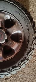 Vendo 4 gomme BF Goodrich Mud Terrain complete di cerchi in lega. Misura 245/70 r16. Le gomme sono in ottimo stato, con un battistrada del 70 per cento. Vendo per passaggio a gomma più morbida, dato che la macchina cammina solo su strada. Contattare solo se veramente interessati. Prezzo leggermente trattabile