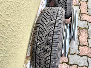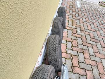 vendo blocco di pneumatici quattro stagioni (usate solo un mese come nuove),cerchioni e copricerchi ideali per fiat panda 141.