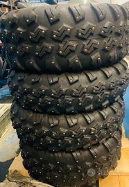 Vendo 4 pneumatici chiodati Maxxis M 9806 AT 26X 10-14 e 4 cerchi Polaris in ottime condizioni , usati pochissimo