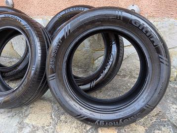 Vendo set di 4 gomme / pneumatici estivi 215/55 R17 98H come nuovi installati di serie su veicoli Ford e compatibili con tutti i veicoli SUV o MPV omologati per queste caratteristiche. Il prezzo è per l'insieme di tutte e quattro gli pneumatici. Marca: Giti - German Engineering Modello: GitiSynergy H2 Dimensioni: 215/55 R17 Sforzo Massimo: 98H, ovvero 750 kg per gomma e 210km/h di velocità Variante: XL Extra Load, ovvero super resistente Classe di aderenza sul bagnato: A (la migliore) Produzione DOT: 3924, ovvero settimana 39 del 2024 Giti è un marchio di pneumatici globale appartenente a Giti Tire, unazienda con sede a Singapore. Fondata nel 1951 a Taiwan, Giti Tire è oggi uno dei più grandi produttori di pneumatici al mondo, offrendo una vasta gamma di prodotti per autovetture, veicoli commerciali, camion, autobus e veicoli agricoli. Il marchio è riconosciuto per la sua tecnologia avanzata, qualità affidabile e impegno per linnovazione e la sostenibilità. Di fatto, è montato di serie da molte case produttrici, tra cui Ford sui suoi veicoli massivi tipo SUV.