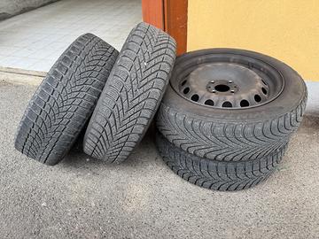 Vendo 4 pneumatici invernali con cerchio due gomme Pirelli e due gomme seiberling misura 185/55 r15, battistrada 60% usate poco. Vendo per cambio auto