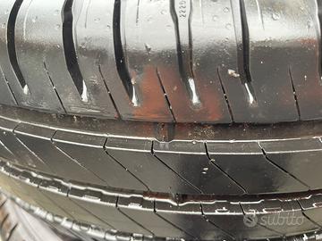 Due gomme con usura identica, una leggermente più bassa ma ancora in ottimo stato.
