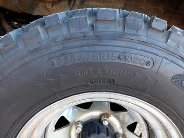 5 pneumatici 225 75 15 di cui una ruota di scorta mai usata e altri 4 pneumatici acquistati a marzo 2024 tipo mud. percorsi appena scarso 2000 km praticamente nuovi. Adatti per tutti i tipi di fuoristrada : Suzuki samurai,sj413,sj410,vitara, nissan patrol,Navara, terrano, x trial, pathfinder, frontier, toyota, Rav 4, land cruiser, hilux, tundra, jeep,wrangler, rubicon, renegade,compass cherokee,gladiator, Ford ranger, bronco, pickup, GAC gonow, mahindra go, mitsubischi L200 suv, land rover defender, Mercedes tata, isuzu d-max, lada ecc