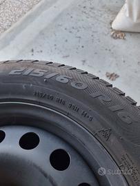 Vendo per passaggio a nuova auto 4 pneumatici Pirelli sottozero nelle misure 215/60 R16 comprensivi di cerchi in ferro. Gli pneumatici sono quasi alla fine mentre i cerchi in ferro sono nuovi e privi di alcun segno, sono perfetti. Sonon a 5 fori, pari al nuovo. I cerchi sono stati usati solamente per una stagione invernale. No scambio o perditempo.