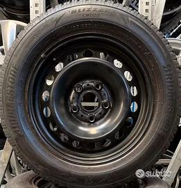 Vendo 4 (quattro) gomme, pari a 1 (uno) treno, complete di pneumatici Bridgestone e cerchi in acciaio per Volkswagen Golf, usati per 2 mesi l’inverno scorso. Su richiesta posso allegare la fattura di acquisto. Pneumatici invernali Bridgestone Blizzak LM001 EVO 195/65 R15 91T 5,5-6mm di batt istrada portata oltre 600kg per pneumatico. Cerchi in acciaio, verniciati a polvere nero lucido, 15 pollici di diametro (15”), larghi 6 pollici, ET offset 43mm, foro centrale 57.1mm, attacco al mozzo 5 fori e distanza fra i fori 112mm (5x112).Le 4 gomme erano state usate l’anno scorso su Volkswagen Golf del 2021, ma le stesse possono essere installate anche su altri veicoli. Le 4 gomme hanno meno di 1.000 km all’attivo, battistrada uniforme, no danni, no striature o problemi, sono state controllate dal gommista e possono essere utilizzate fin da subito. Tenuti per un anno distese in piano in capannone dal gommista.