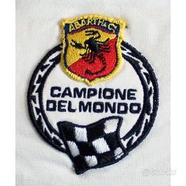 Polo con colletto a 3/4 verticale, bandina tricolore all'interno del colletto, stampa "campione mondiale marche" su manica sinistra, logo Fiat 600 frontale ricamato , patch Campione del mondo su manica sinistra, nastrino tricolore su girovita, patch con spaccato del motore all'interno della polo.