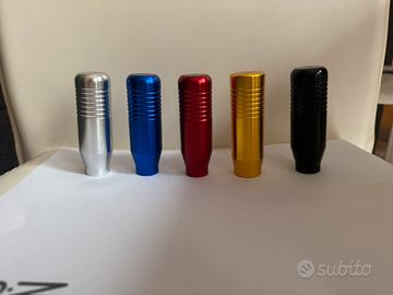 pomello in alluminio, alleggeriti sportivi universali vari colori di facile montaggio con adattatori possibile montarle su tutte le auto. sportive rs tuning rally utilitarie modello racing 85mm (nero, grigio alluminio, oro, rosso, blu) 10€ modello tondo 5m o 6m 15€ cuffia cambio marce fiat abarth 500 15€ (nero senza scritta) cuffia cambio marce abarth con scritta e scorpione 30€ ghiera e anello cromato per fiat 500 e Abarth 595. 10€ A disposizione coprimozzo per 500 595 abarth posso mandare altre foto con misure ecc