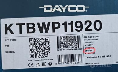 Vendo pompa acqua inseribile DAYCO DP1981 nuova e imballata facente parte di kit distribuzione per motore VW 2000 TDI 150CV e non utilizzata perché nel mio caso necessaria pompa meccanica non inseribile.