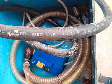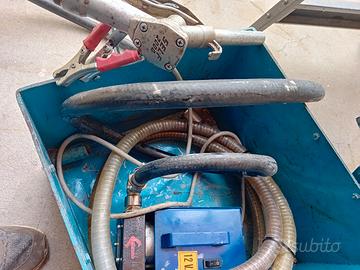 Pompa travaso gasolio 12 volts completa di tubo alta pressione con pistola professionale, tubo aspirazione con filtro. Cassetta di contenimento per trasporto. Non spedisco.