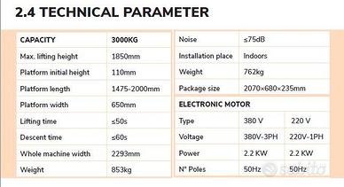 Nuovo, Fatturabile, ponte sollevatore per auto , modello a forbice fuori terra portata da 3000 kg , modello 220/400 Volt.