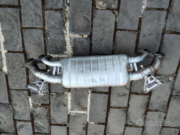 Porsche 992 e 992.2 terminale di scarico originale OEM modificato, che riutilizza le valvole di serie originali di apertura e chiusura, compatibile con i modelli Porsche 992 Carrera, Carrera S/T e Carrera GTS, e con i nuovi modelli Porsche 992.2 Carrera e Carrera S/T. Lo scarico è stato completamente aperto e modificato all'interno, creando 2 bypass per aumentare flusso di scarico e di conseguenza il sound anche in configurazione delle valvole di scarico chiuse, quando si attiva lo scarico con la modalità aperta lo scarico lavora diretto senza perdite di pressione all'interno del "box o scatola" originale di scarico, praticamente la "scatola" originale è stata mantenuta per il montaggio diretto senza modifica alcuna. Il foro centrale al di sotto del terminale di scarico è stato preventivamente creato per eventuali condense interne che si dovessero creare. Sound e prestazioni aumentate ad ogni regime di marcia.
