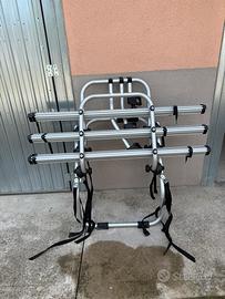 Vendo causa inutilizzo, portabici da portellone posteriore FABBRI, 3 posti bici, tutto in alluminio, prodotto pari al nuovo, utilizzato solo una volta poi sempre conservato in garage. Adatto a station vagon o auto a 2 volumi. Non berlina, no monovolume.