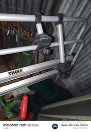 porta bici che va montata. al portellone. regolabile x tutti i tipi di auto. ci sono 3 estensori x caricare 3 bici con braccio antifurto che si chiude con chiave. x non fare rubare le bici