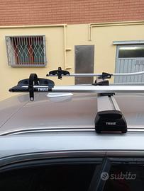 Barre porta tutto più 2 porta bici Thule tutto in alluminio pari al nuovo con serrature e kit per fissare anche bici con freno a disco e perno passante.