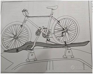 portabici adattabile a vari tipi di modelli e dimensioni biciclette muscolari. Fissaggio per barre da tetto con chiavi e serratura antifurto marca marca Volkswagen logo Crash