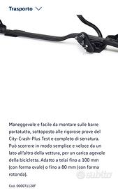 Facile da montare sulle barre portatutto, completo di serratura. Può scorrere in modo semplice e veloce da un lato all‘altro della vettura, per un carico agevole della bicicletta.