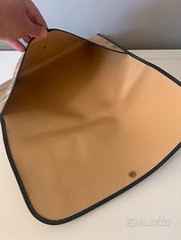 Splendida borsetta porta documenti per auto d’epoca, vintage anni’60/70. Materiale interno pelle. Materiale esterno panno con stampe dei marchi in voga all’epoca. Usato e vissuto ma in ottime condizioni. Misura 39x26cm. Articolo fantastico per amanti ed appassionati delle auto d’epoca da non farsi scappare.