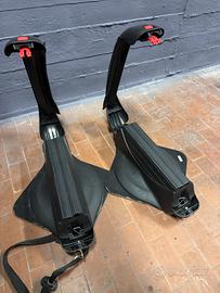 Porta sci funzionante al 100% con segni di usura dovuti al tempo. Compatibile con tutte le auto con tetto di metallo.