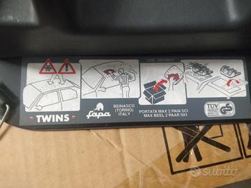 Portascì magnetico Fapa Twins. Comodissimo da installare e rimuovere dal tettuccio dell'auto. Imballo non disponibile.