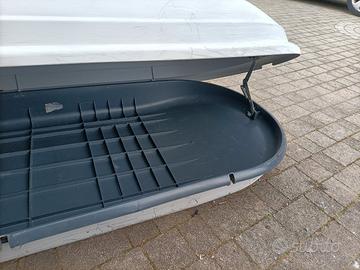 porta valigie per auto perso max 50kg universale,compreso di ganci di fissaggio e chiave,moltissimi segni di usura ben visibili in foto.