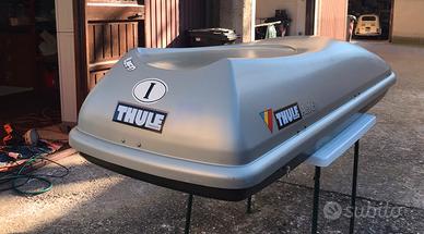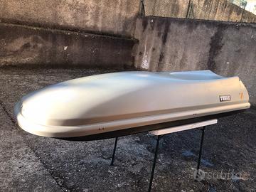 Vendo portabagagli Thule, lungo piu di due metri, completo di attacchi originali. Presenta un piccolo segno sul retro, ma è in buono stato.