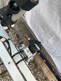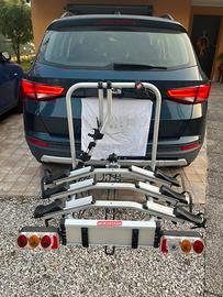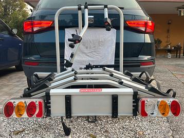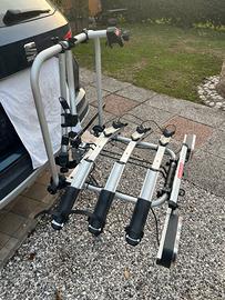 Portabici Fabbri da gancio traino, porta fino a 3 bici usato 3 volte in 3 anni quindi nuovo, molto pratico e veloce ha chiave per l attacco alla macchina ed anche ribaltabile per consentire l apertura del baule anche con le bici montate