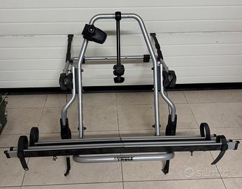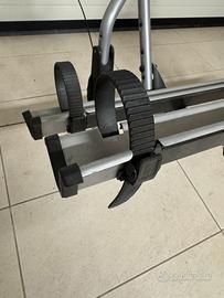Il fissaggio delle bici è semplice e veloce grazie alle pinze bloccatelaio rimovibili e alle canaline poggiaruota regolabili con cinghie a rilascio rapido. Completamente ripiegabile con facile accesso al bagagliaio con il portabici e le bici montate.