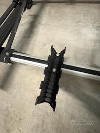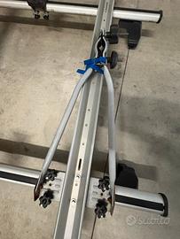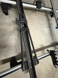 Portabici da tettuccio auto idoneo per 3 bici, marca Huggy, con 3 portabici. Montaggio universale per moltissimi modelli di auto (vedere foto con elenco), chiusura a chiave, istruzioni in dotazione. Peso max di ogni bici: 15kg.