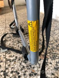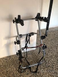 Portabici per auto berlina (es. Alfa Romeo 159) efficiente. Capienza fino a tre bici. Come si vede in foto c’è solo una coppia di elastici ne mancano due (si trovano i ricambi sul web)