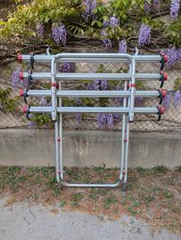 portabici Fiamma Carry-Bike per Volkswagen T5, fino a 4 biciclette. Struttura in alluminio, robusto e leggero, montaggio su portellone senza fori. Completo e in buone condizioni.