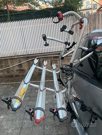 Vendo portabici da portellone posteriore universale marca Fiamma, 3 posti, con tutti gli accessori come da foto. Non va bene per i camper. Vendo per inutilizzo. Zona Roma nord