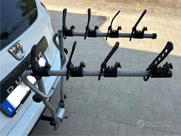 Porta comodamente 4 bici sia da adulto che da bambino che si affrancano con ganci in gomma adatti ad ogni tipo di bicicletta.