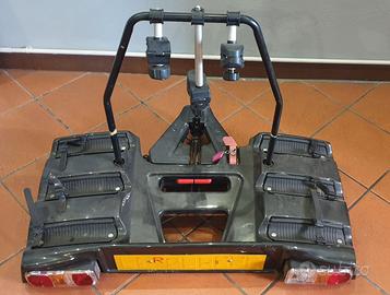 Portabici per aggancio su gancio traino. Portata 3 biciclette. Ha un sistema basculante per poter aprire il baule dell'auto senza togliere le biciclette. Usato 3 volte!