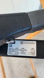 Vendo portabici per gancio traino marca Thule modello VeloSpace XT, per trasporto di n° 2 biciclette (comprese e-bike), ribaltabile (per accedere al portello posteriore dell’auto) e richiudibile (per rimessaggio dello stesso), completo di targa ripetitrice, fari posteriori, connettore alimentazione 13 pin e chiavi di chiusura. Capacità max. carico: 60 Kg. Dimensione max. ruote: 29”. Larghezza max. pneumatici: 3”. Interasse ruote max.: 1.300 mm. Distanza fra bici: 25 cm. Dimensioni: 135x69x79(h) cm. Peso: 18,7 kg. Colore: nero/alluminio.