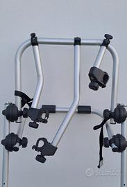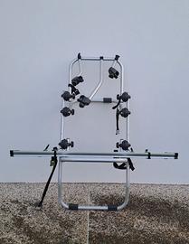 Portabici portellone posteriore per 3 bici (carico massimo 15kg a bici, no E-Bike), specifico per vetture di tipo Van. Richiudibile quando viaggia a vuoto. Leggerezza e robustezza del prodotto garantite grazie all'utilizzo dell'alluminio elettrosaldato. Montaggio bici mediante bracci in alluminio rotanti di 360°. Con 6 snodi dentellati in ABS con doppio raggio per una perfetta tenuta anche su dossi stradali e strade sterrate. Con cinghiette e fibbie robuste spessorati in gomma antigraffio per fissaggio ruote bici. Lunghezza del binario: 1250 mm, per ruote con larghezza fino a 51 mm e passo fino a 1150 mm Non copre la targa. Max load 45kg.