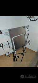 Portabici posteriore Padova Alu 3 bici ART. 650/3 nuovo mai adoperato completo di imballo. Acquistato per trasportare una bici a 3 ruote per anziano e mai utilizzato. È stata aggiunta una piastra in alluminio come base per trasportare la bici a 3 ruote. Pagato 200 euro + il costo della piastra 70 euro. Vendo tutto a 150 euro. Di seguito le caratteristiche... Il portabici posteriore in alluminio Padova 3 bici permette di portare bici fino a 28", è il più economico tra i prodotti con binario in alluminio e è completamente regolabile. Per bici con interasse fino a 29" (interasse massimo 120 cm) disponibile optional art 989 I braccetti per la prima e seconda bici possono essere acquistati come accessorio art 693/CA, 693/MA e 693/GA Per un maggiore comfort, sono disponibili come optional i braccetti con crick art 694, perfetti per bici con telaio in carbonio.