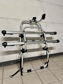 Questo portabici da portellone, 100% Made in Italy, praticamente mai usato, è realizzato in robusto alluminio elettrosaldato per garantire leggerezza e una portata fino a 45 kg per trasportare due biciclette, incluse le E-Bike, con la massima praticità e sicurezza.