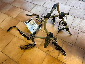 Portabici da portellone posteriore Mont Blanc Rider Plus è un portabiciclette compatto e adatto alla maggior parte dei veicoli, porta fino a 3 bici (max 45 kg) a seconda del modello di auto. Montaggio semplice e veloce senza bisogno di utensili, si fissa al portellone per mezzo di 6 cinghie provviste di uno speciale tenditore ed è facilmente regolabile grazie agli snodi dentati con preposizionamento in base al modello specifico di auto. Le bici si fissano facilmente e rimangono ferme in posizione grazie ai bloccatelai in dotazione. Facilmente ripiegabile e riponibile nel bagagliaio quando non si usa. Solo consegna a mano. Non spedisco