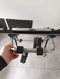 Portabici da portellone posteriore per 2 bici della Thule, modello Clipon High 9105 9106. Il prodotto è perfettamente funzionante, ha normali segni di utilizzo, ma è stato sempre conservato in garage al chiuso.