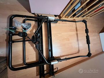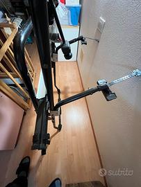 Thule 973 Come nuovo, da attaccare a portellone, pronto per 2 bici ma implementabile a 4, tutti gli accessori per adattare ai vari tipi di portelloni, montabile su un’ampia gamma di auto, furgoni,..antifurto a chiave, alluminio, non ruggine. Per motivi di peso e ingombri preferito ritiro in zona, da concordare